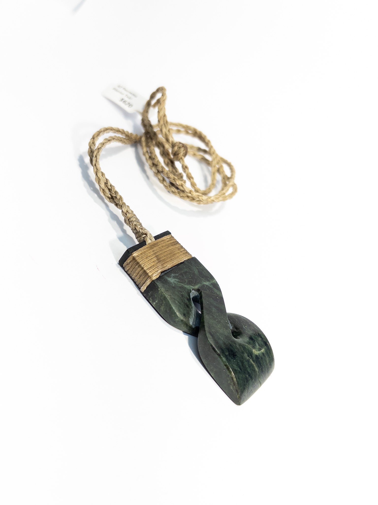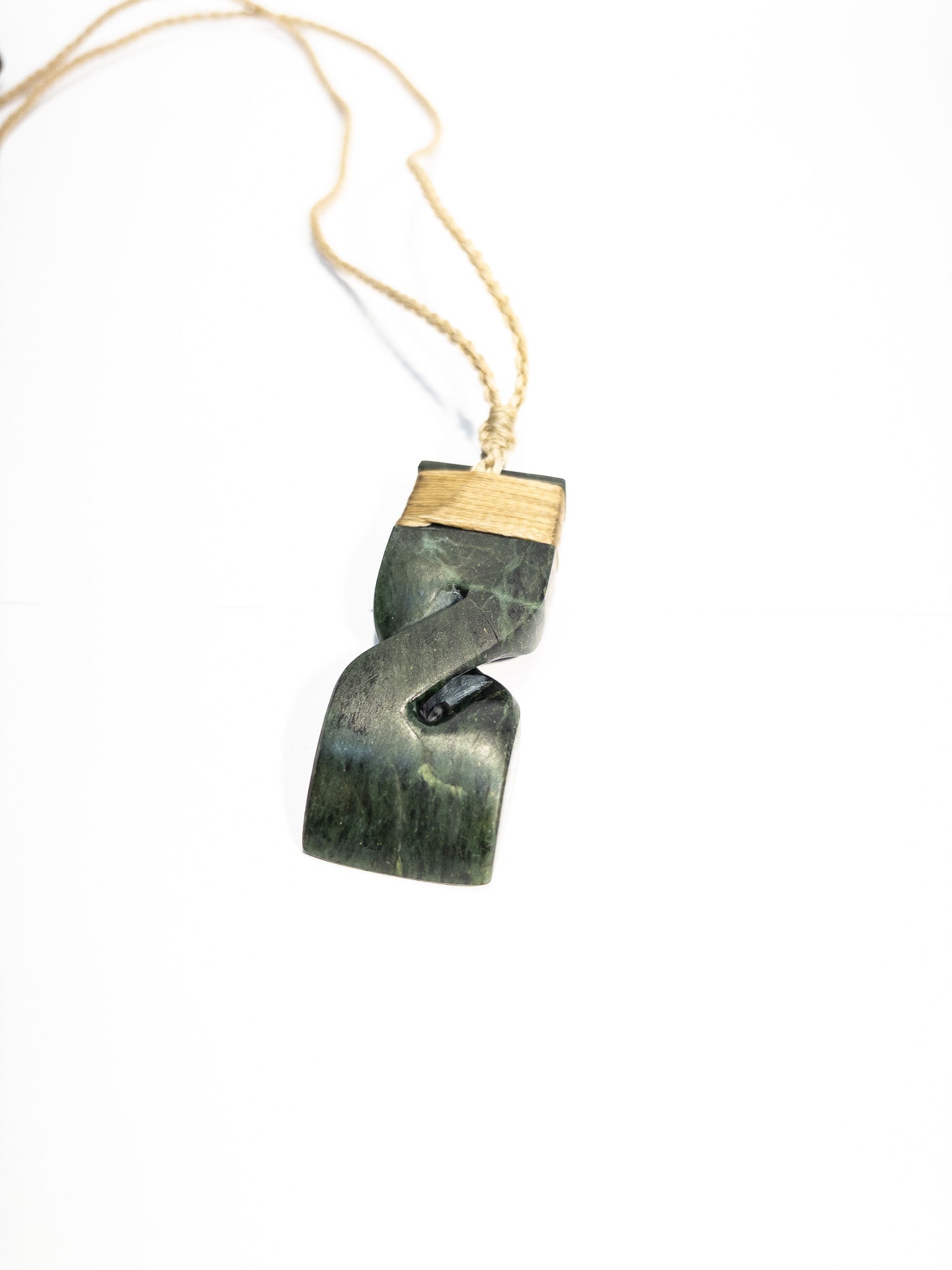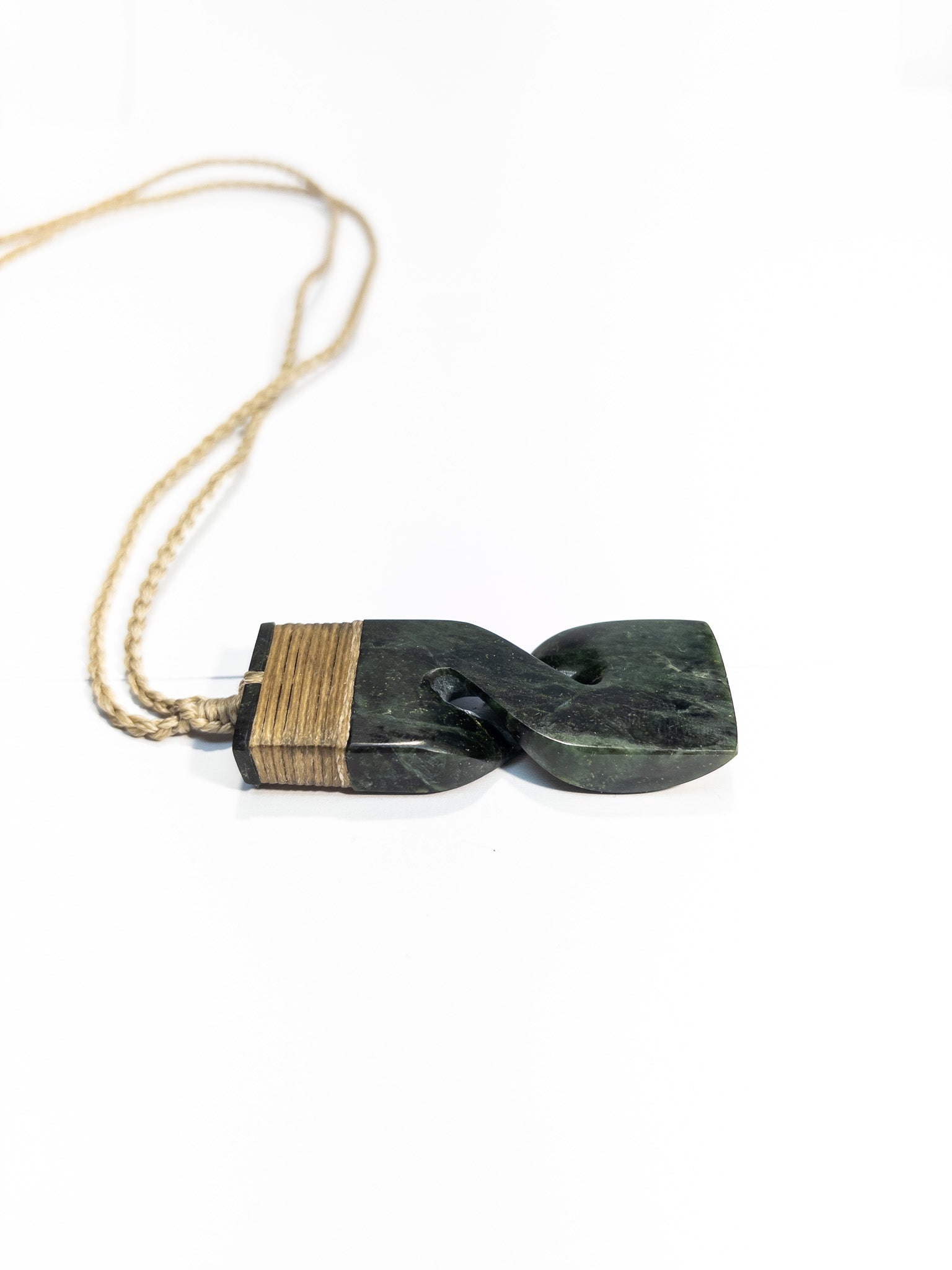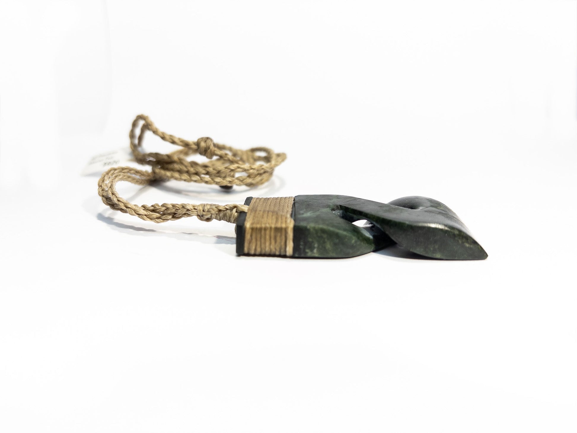New Zealand Pounamu Hei Toki Pikorua Pendant with beige cord