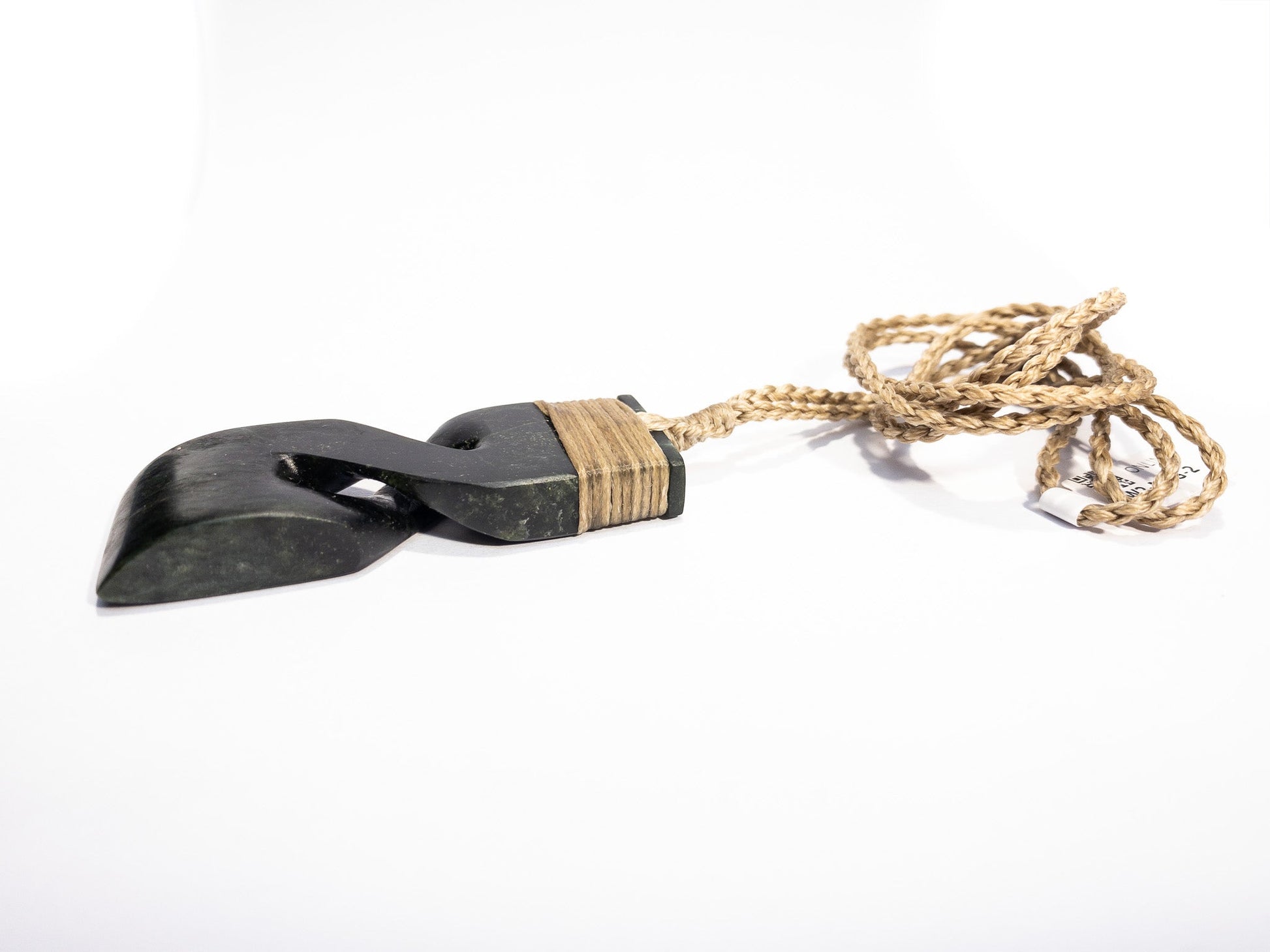 New Zealand Pounamu Hei Toki Pikorua Pendant with beige cord